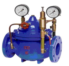 200X减压稳压阀由主阀、导阀、针阀、球阀、微型过滤器和压力表组成水力控制接管系统。使用时,当调定出口压力后,能自动保持稳定出口压力。